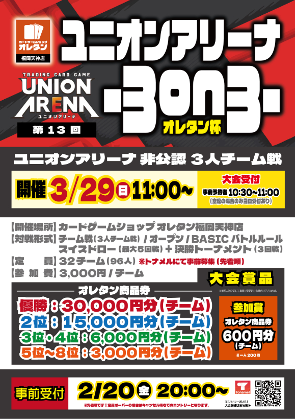 【福岡天神店】第13回 ユニオンアリーナ 3on3 オレタン杯
