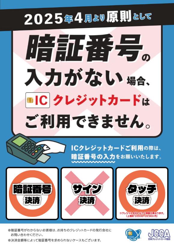 クレジットカード決済時の暗証番号入力の義務化のご案内(2025年4月より開始)